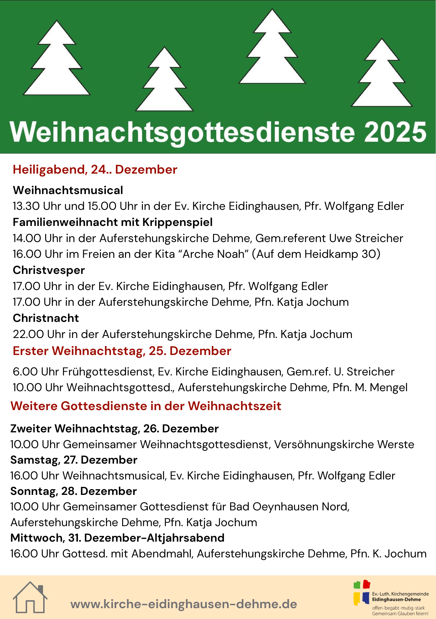 Herzlich Willkomen zu den Weihnachtsgottesdiensten in unserer Kirchengemeinde.